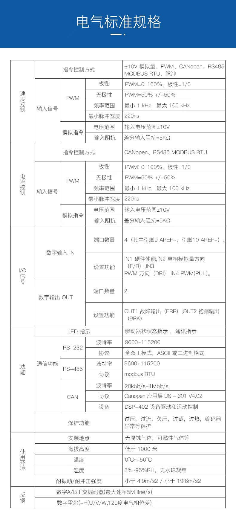 ?CAN2.0 局域總線,兼容 CANopen DS-402,波特率最高 1MHz ;